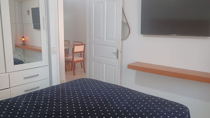 Com 70m² de área útil, o imóvel oferece ambientes amplos e bem distribuídos: 2 dormitórios, sendo 1 suíte, 2 banheiros e uma sala acolhedora, ideal para relaxar ou receber amigos e familiares. A cozinha funcional com armários planejados garante praticidade no dia a dia, enquanto a lavanderia integrada facilita a rotina.