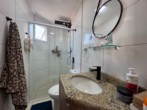 O apartamento conta com 2 quartos, sendo 1 suíte, ambos com armários planejados, garantindo mais comodidade e aproveitamento do espaço. O banheiro social é moderno e bem posicionado, atendendo às necessidades do dia a dia. A área útil de 80m² oferece um ótimo aproveitamento do espaço, proporcionando um ambiente confortável para quem deseja morar em um local tranquilo e bem localizado.