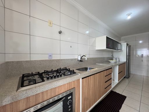 O imóvel está localizado em um andar alto, acima do 4º andar, o que proporciona uma vista deslumbrante para o mar, além de garantir maior privacidade e ventilação natural. A sala é ampla e bem iluminada, oferecendo espaço suficiente para dois ambientes, ideal para momentos de convivência e lazer. A cozinha é espaçosa e equipada com armários planejados, o que facilita o aproveitamento do espaço e garante mais organização. A lavanderia também conta com armários planejados, tornando o ambiente mais funcional e prático.